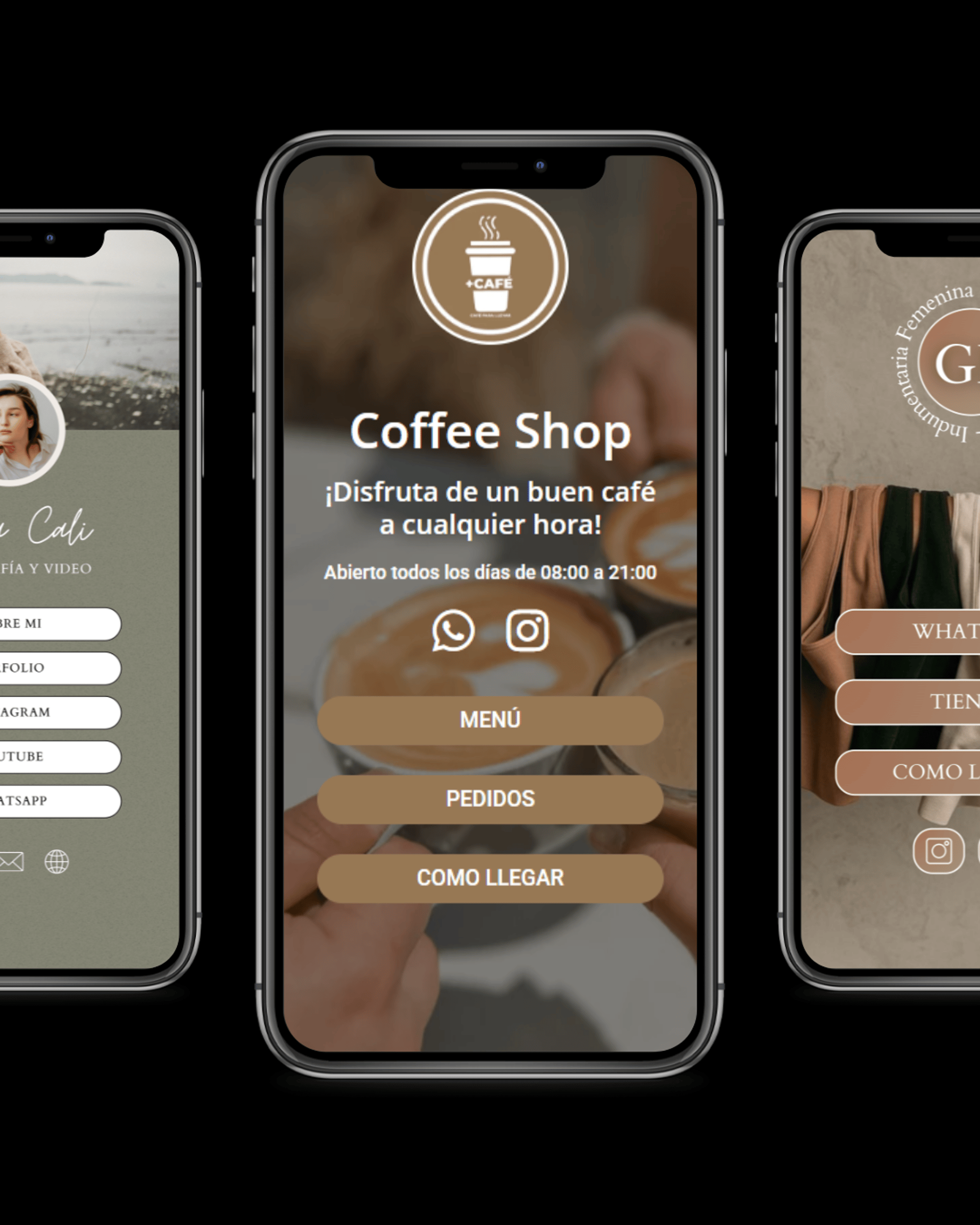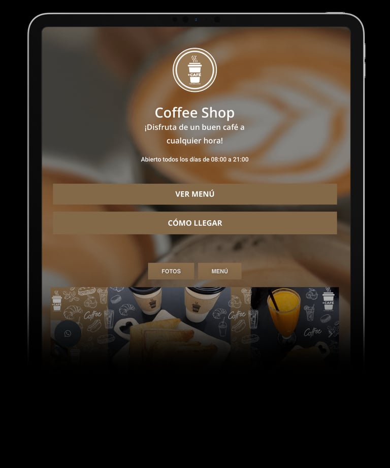 Fotos, menú, pedidos, horarios y cómo llegar, todo organizado y accesible para tus clientes.