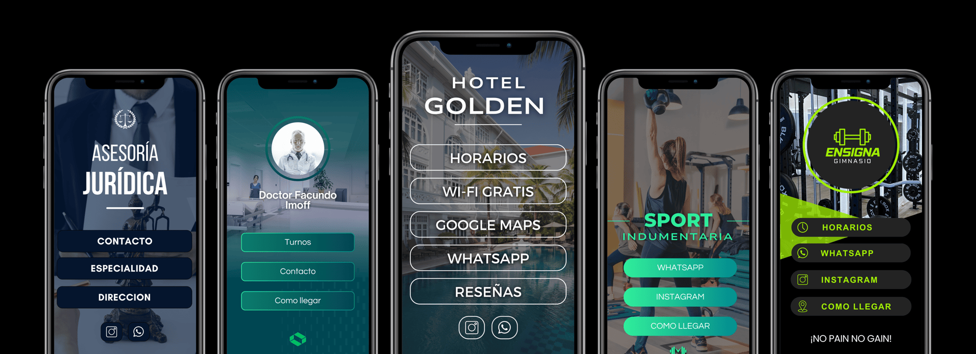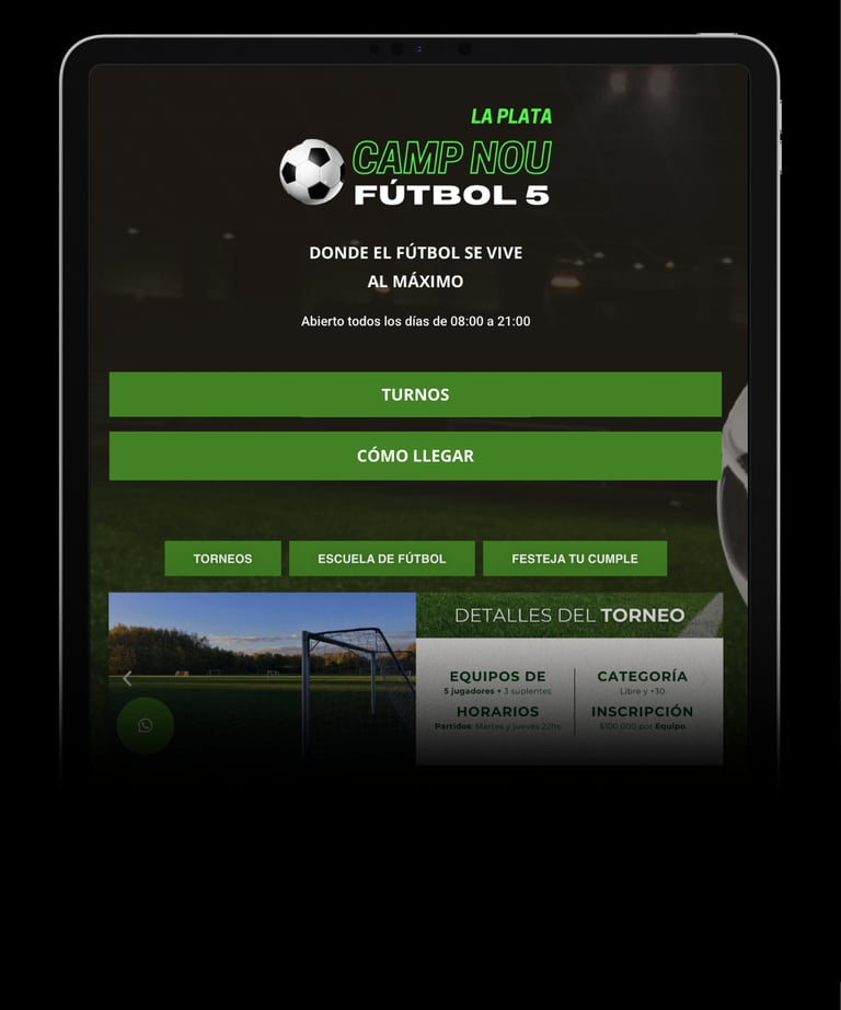 Horarios, turnos, torneos, escuela, cumpleaños, ubicación y contacto.