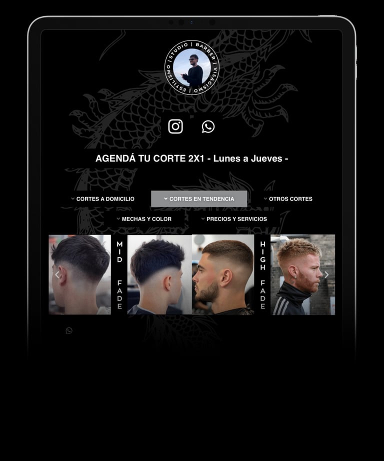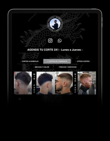 Tendencias, agenda online, contacto, promociones, atención a domicilio, servicios, precios, video y redes.