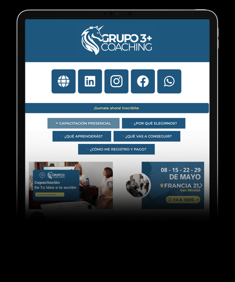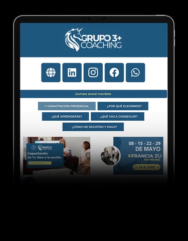 Redes, presentación, video, formulario, información de pago y objetivos.