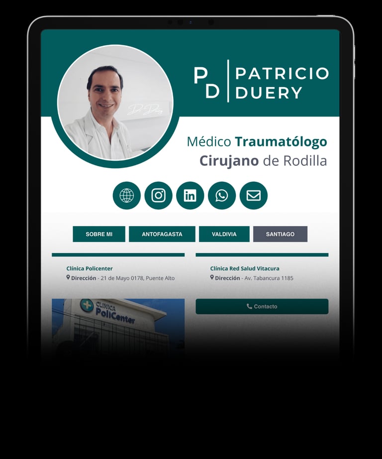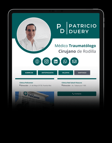 Firma, especialidad, redes, presentación, ciudades y clínicas donde trabaja.