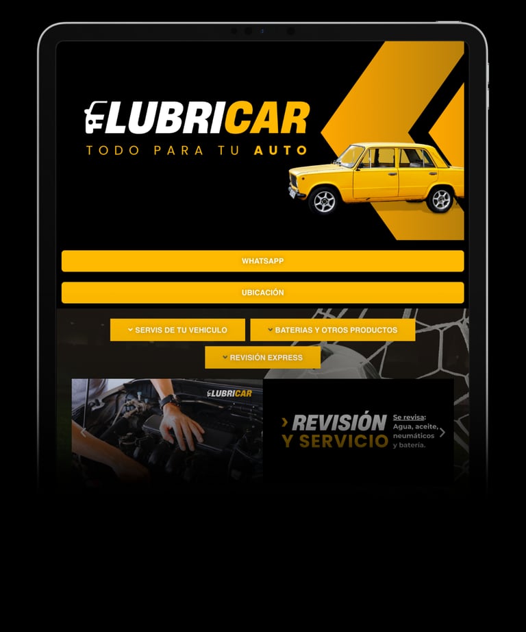 Service de autos, baterías, productos destacados, revisión express, ubicación y contacto directo.